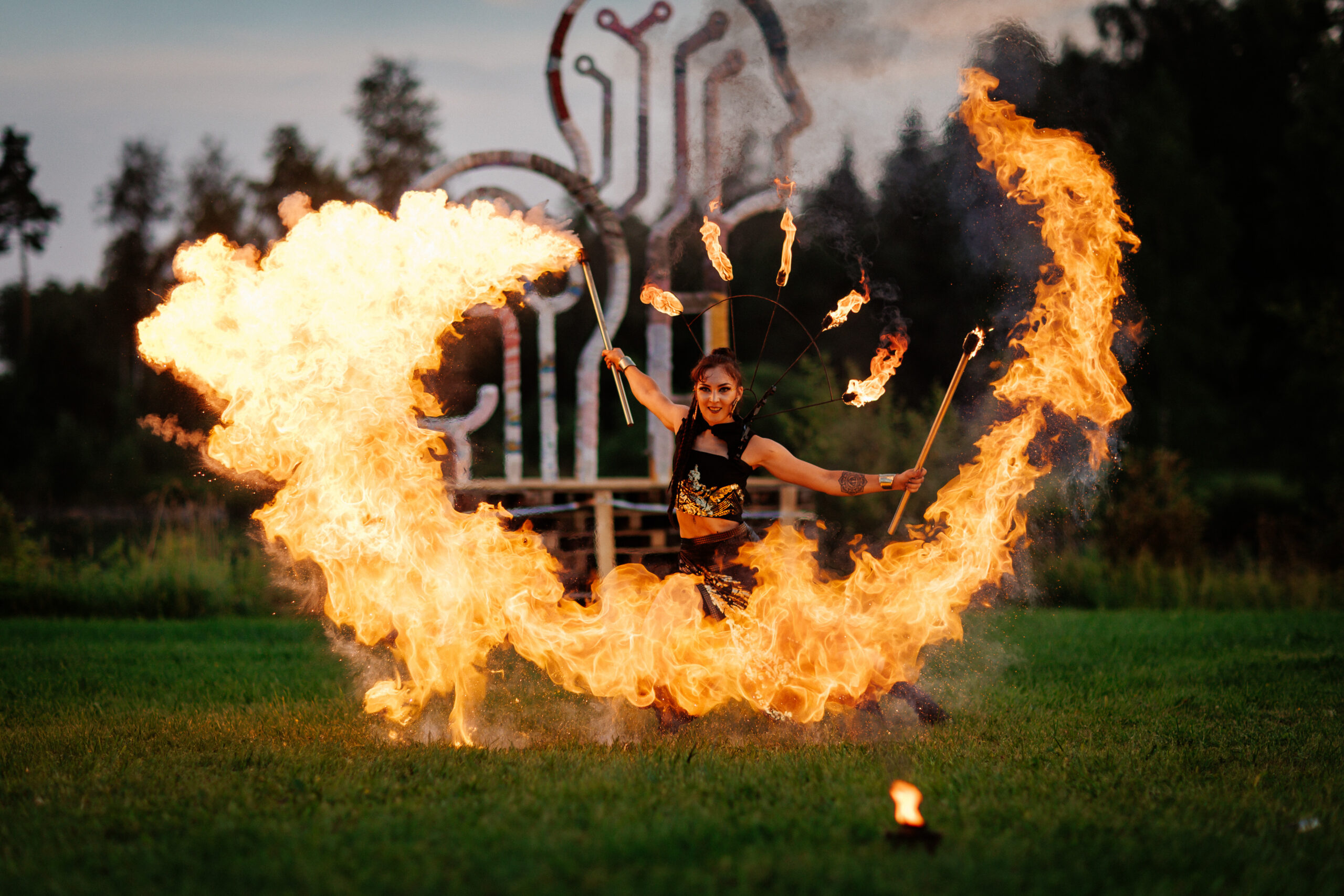 Nagu nimigi Burning Man ütleb, on festivalile omane meesfiguuriga tuleskulptuur, mis pimeduse saabudes süüdatakse. Suurepärase Eesti skulptori abil valmis ka antud suvepäevadele kunstiline konstruktsioon, mis õhtul süüdati.